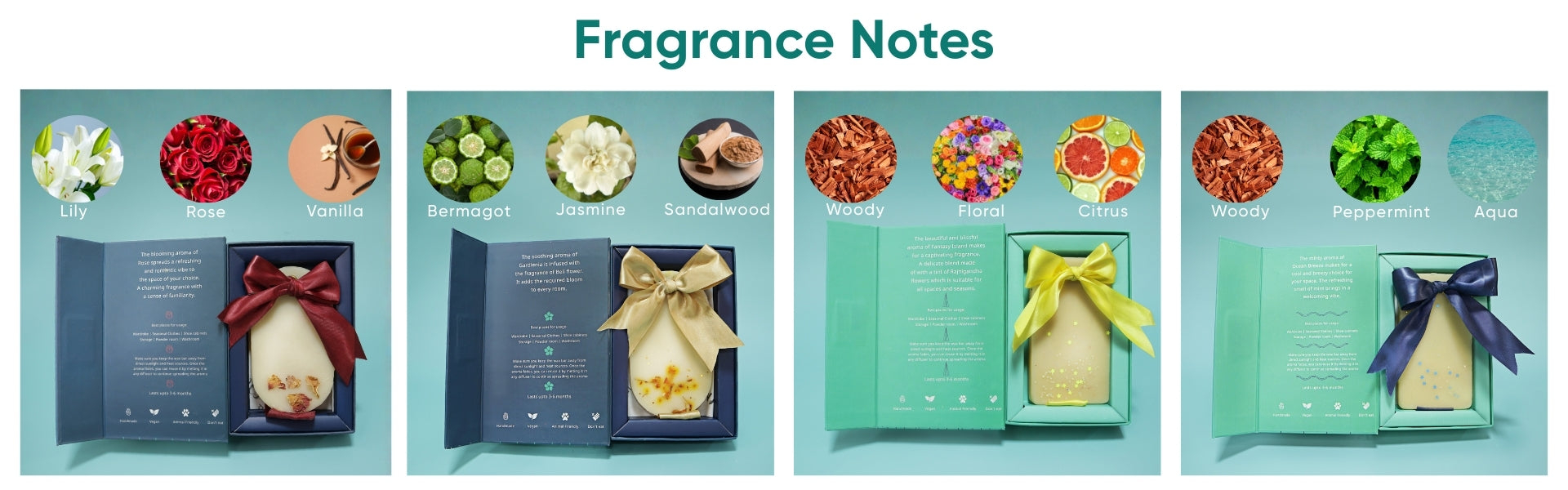 Fragrance bars can be used in enclosed spaces such as drawers and wardrobe closets to open spacious areas around the house including bathrooms and on furniture such as the dressing table.