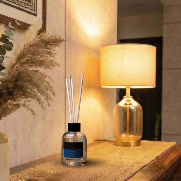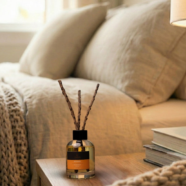 Reed diffusers work by absorbing fragrance oil through natural reeds, which then release the scent slowly and continuously into the air - no flame or electricity required.