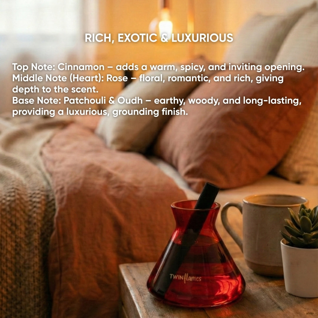 Depending on room size, airflow, and usage, a Twin Flames reed diffuser typically lasts 4–6 months.
