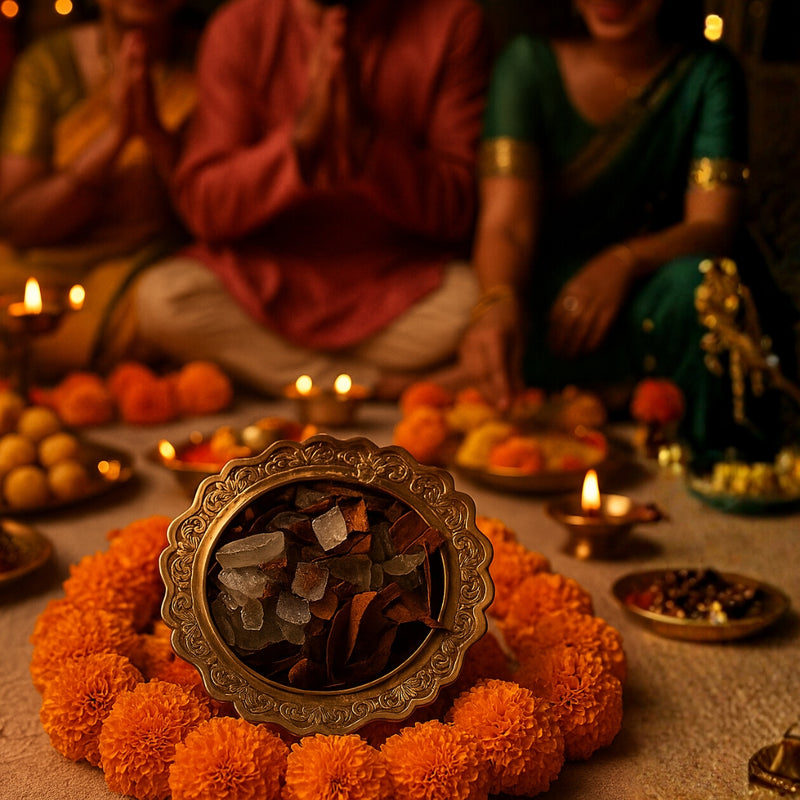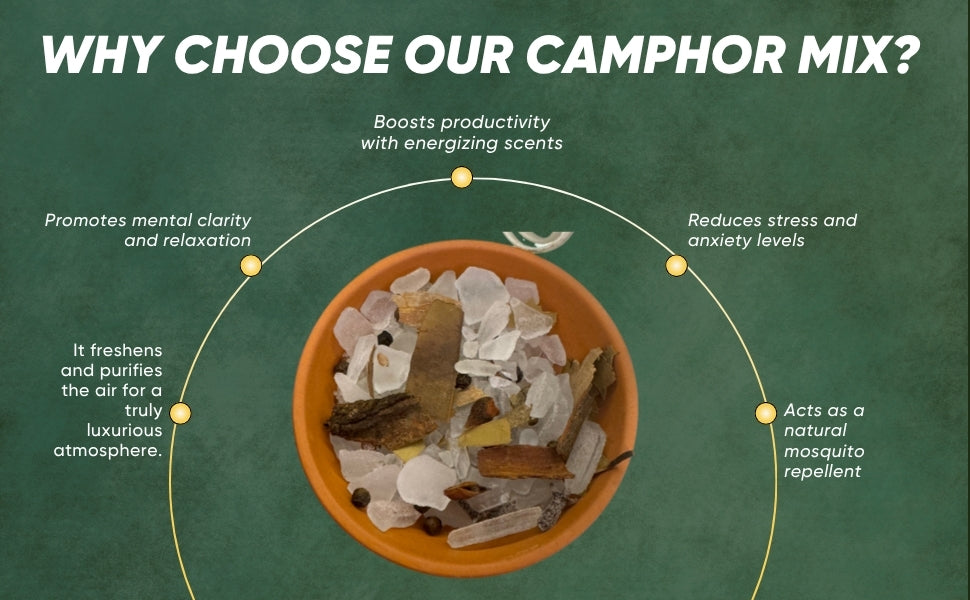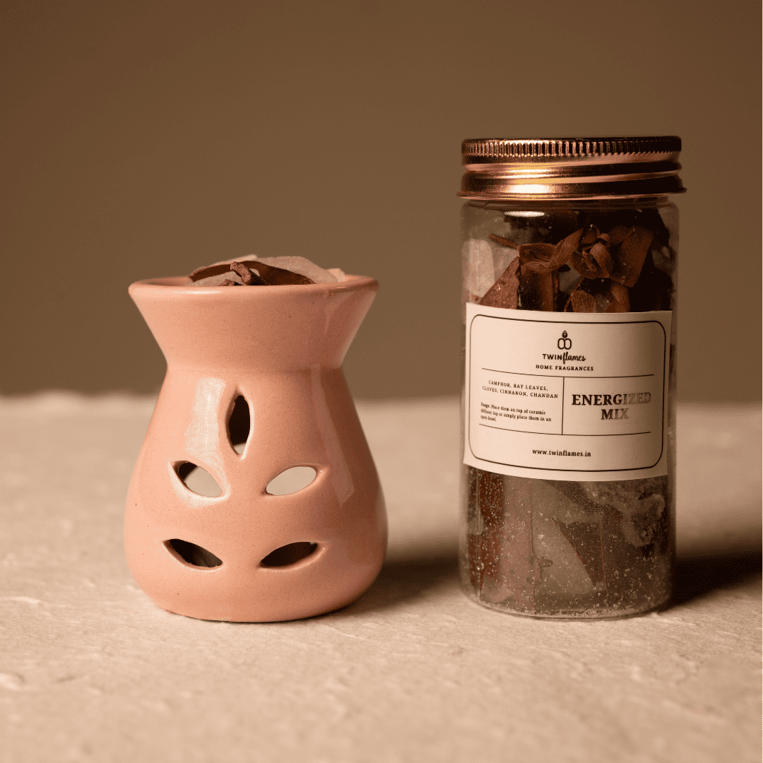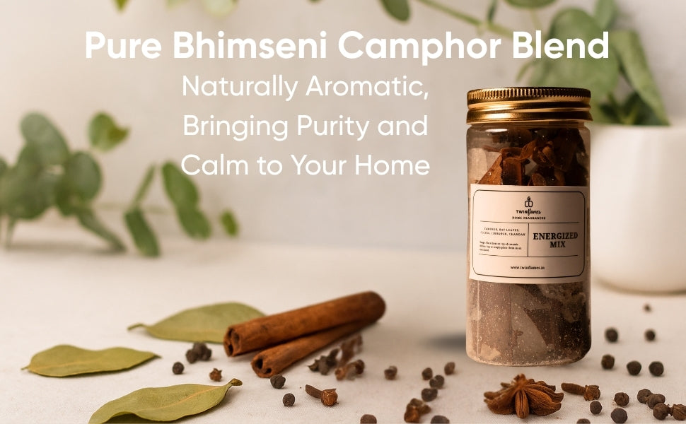 Enhance your meditation practice with the Twin Flames Camphor Mix Jar, infused with natural ingredients like Bhimseni Camphor, bay leaves, cloves, cinnamon, black pepper, and star anise. Its calming and aromatic fragrance helps clear the mind, center your thoughts, and deepen your focus, creating the perfect environment for mindfulness.