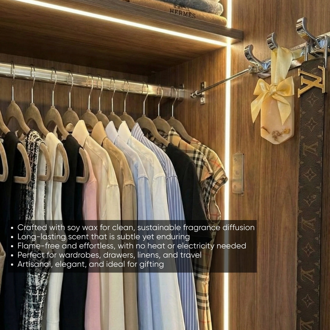 Hand-poured with care, each fragrance bar releases its aroma gently over time, allowing you to scent multiple spaces or rotate fragrances as your mood shifts. Whether placed in wardrobes, drawers, or bedside spaces, this set offers a refined, long-lasting fragrance experience and makes for a thoughtful, sensorial gift.