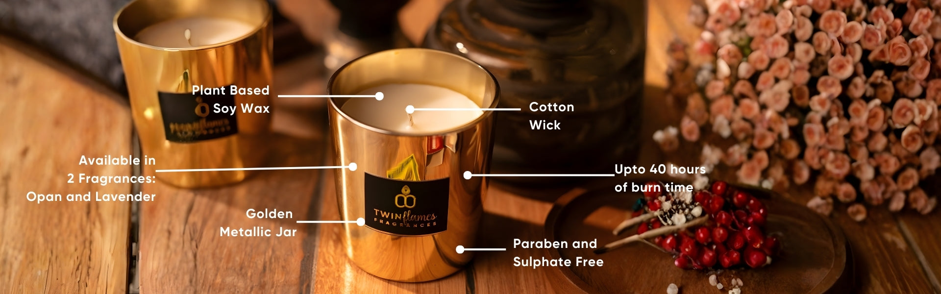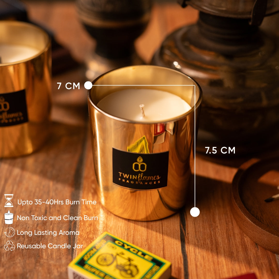 Bring modern elegance into your space with the Twin Flames Metallic Soy Scented Jar Candle. Hand-poured with natural soy wax, this single-piece jar candle offers a clean, long-lasting burn while infusing your surroundings with a soothing aroma.