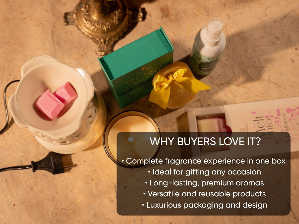 Perfect for festive occasions, housewarmings, corporate gifting, or personal self-care, the Jashn Aroma Gift Box makes every celebration more meaningful with its blend of luxury, utility, and fragrance.